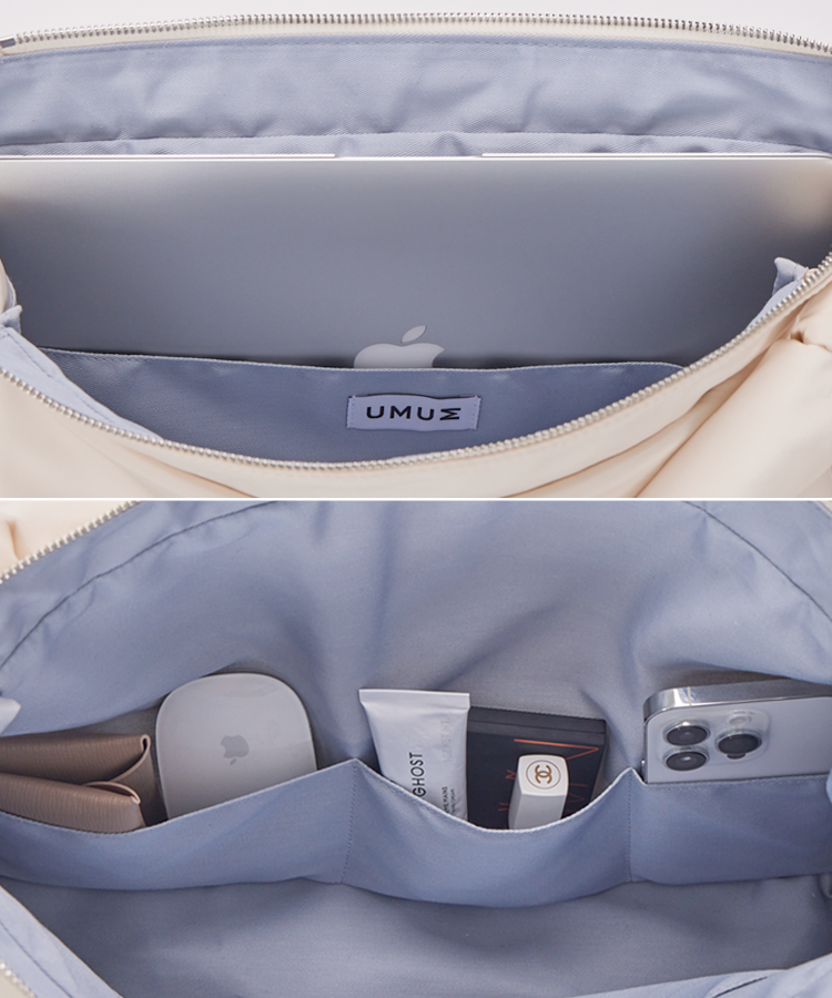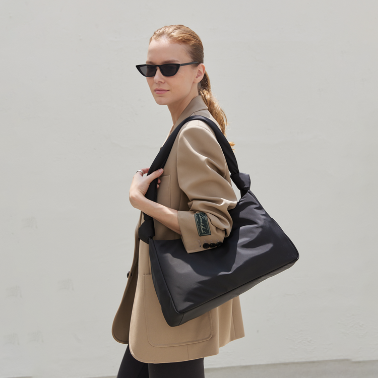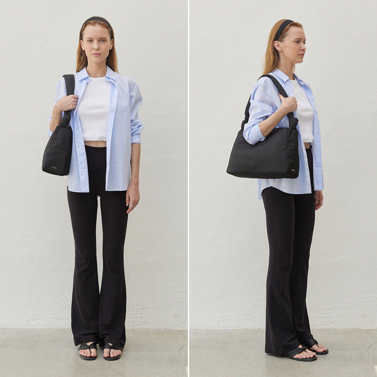 Your perfect daily partner for both work and everyday life. Sized to fit a 15" laptop, it’s crafted in sleek nylon with a refined silhouette—perfect for commuting or the gym. Lightly padded throughout for structure and protection. Comes with a matching pouch that can hold cosmetics or be used on its own.